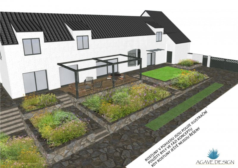 Strančice: fáze projektu - řešení zóny Dům, ukázka terasování nádvoří